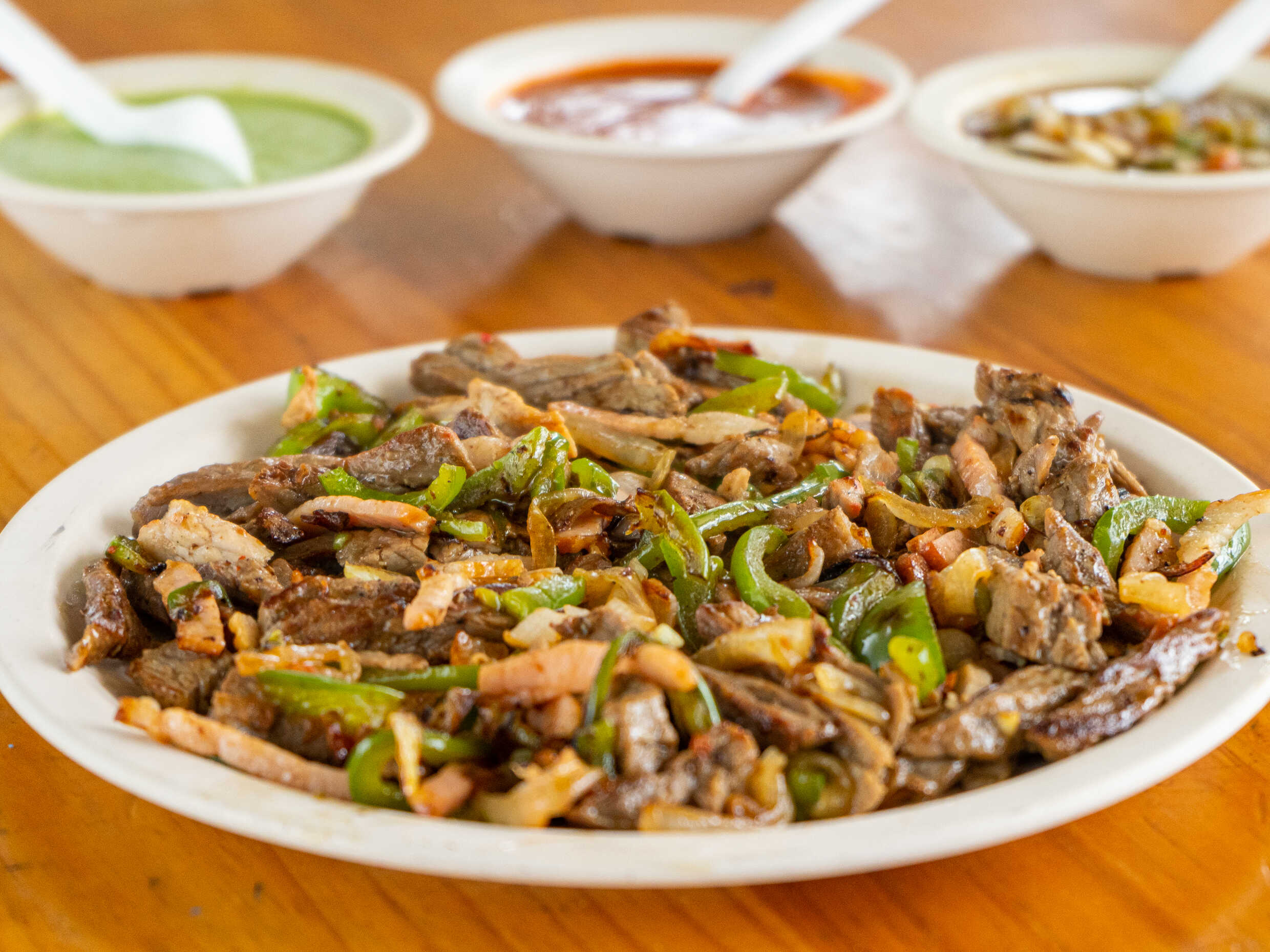 Incluye salsas cebolla, cilantro, piña y tortillas.