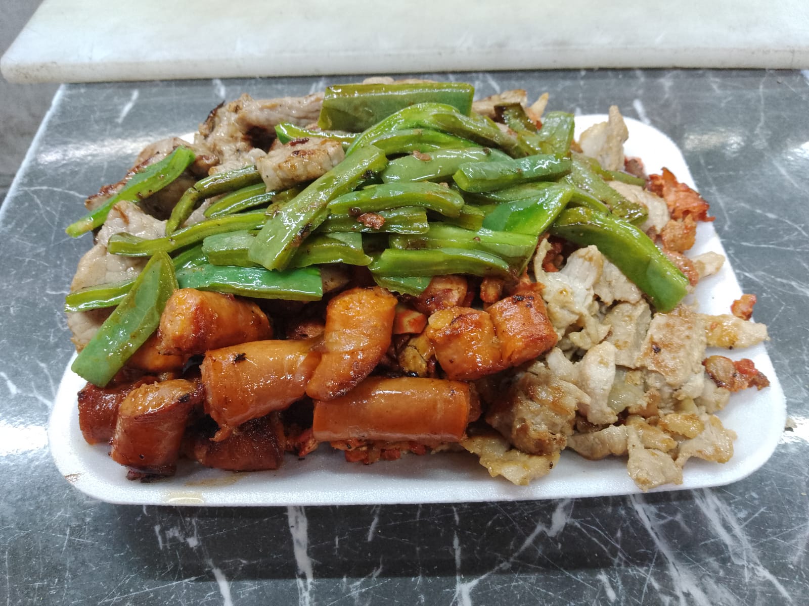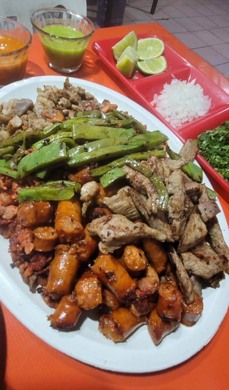 Pastor, chuleta, chistorra, fajitas de pollo y nopales.