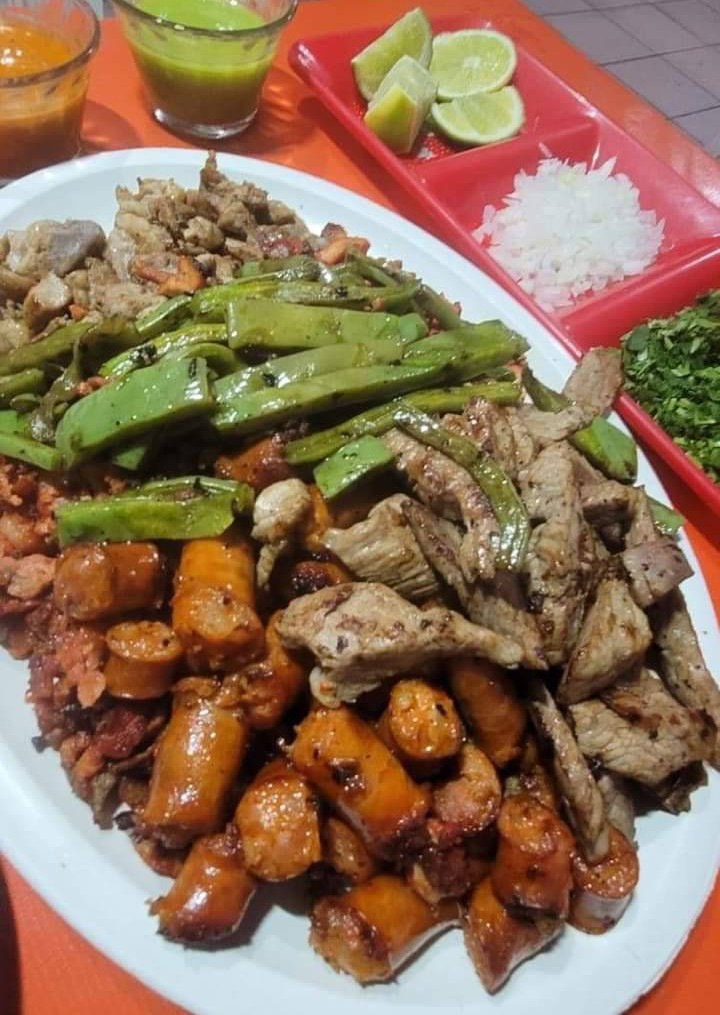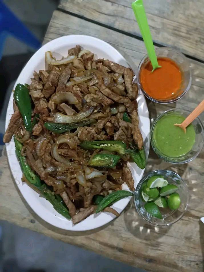 1 kg De arrachera, tortillas, salsa de la casa, cebolla.
