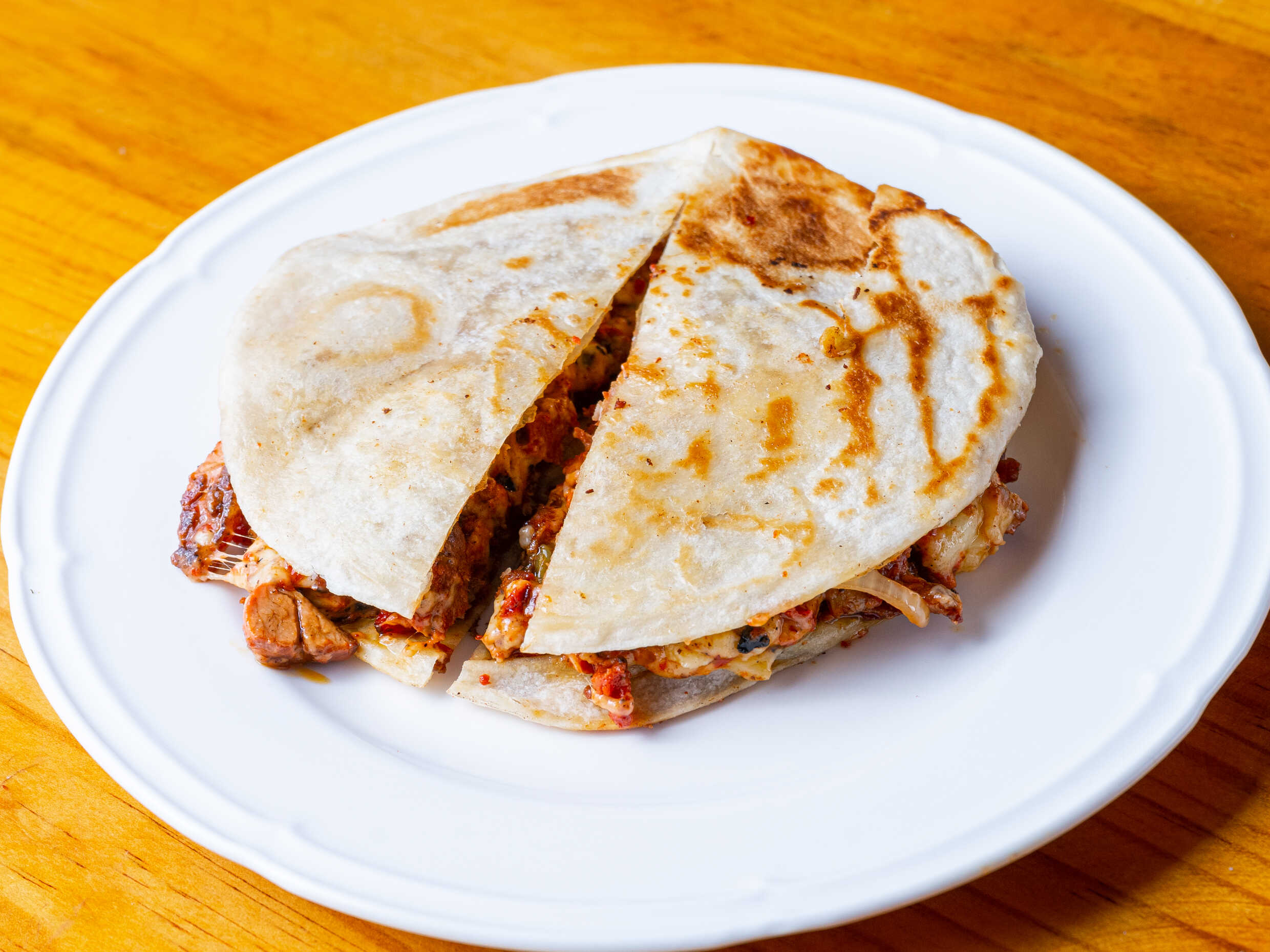 doble tortilla de harina con 150gr, de chuleta c/queso