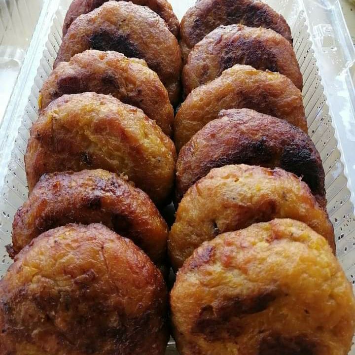 Plátano frito y relleno con queso philadelphia y queso de hebra.