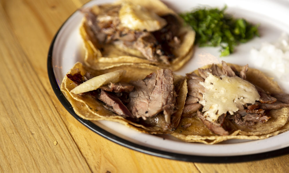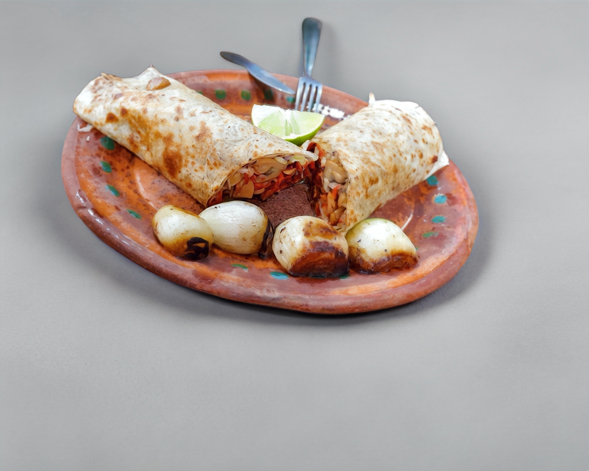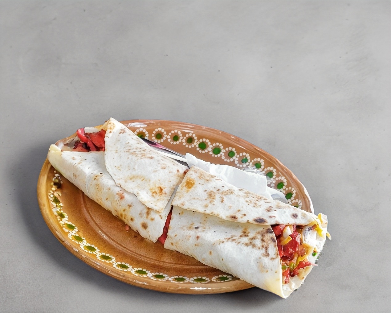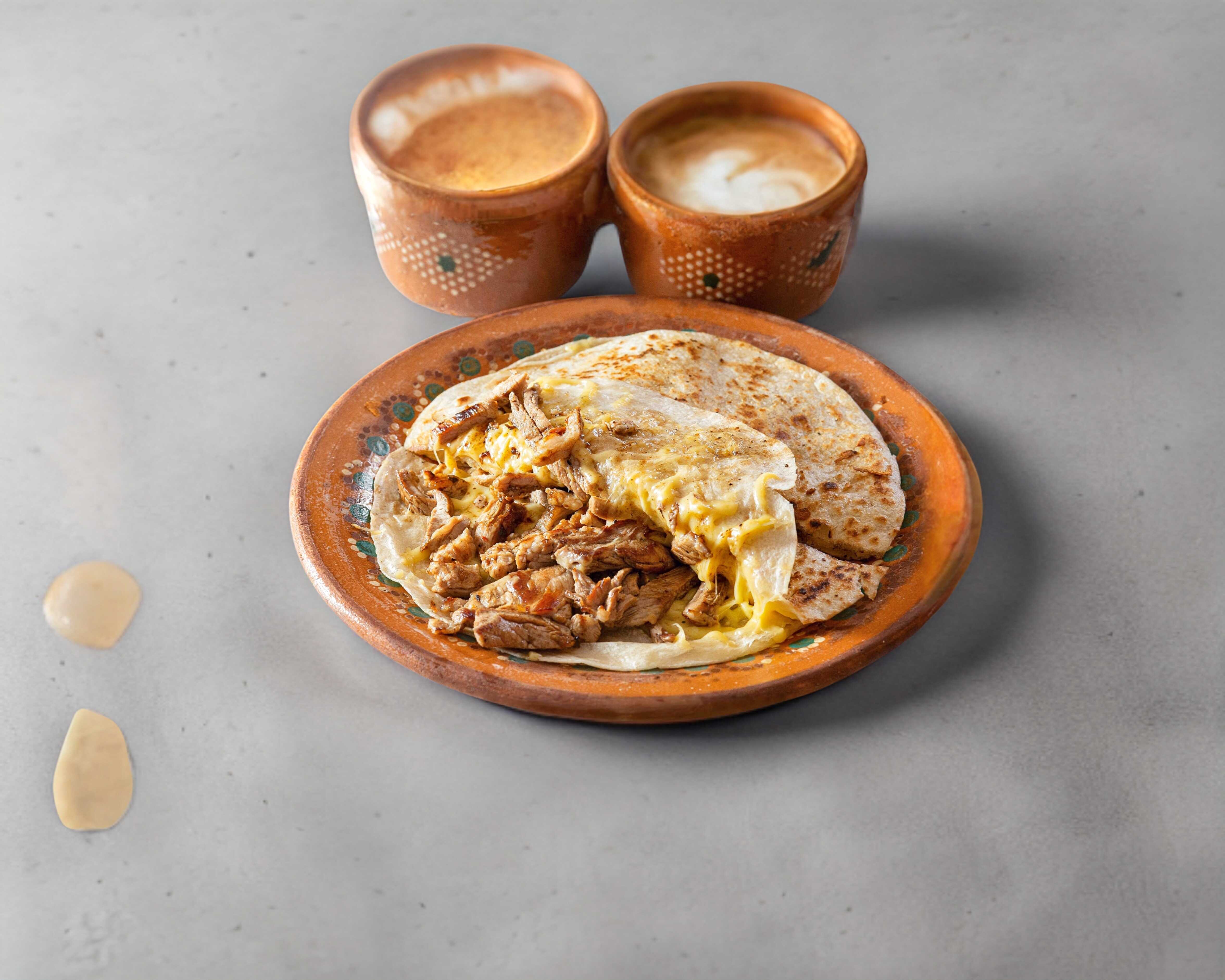 240gr de queso y 100gr de chuleta, 3 tortillas de harina, salsa y limón.