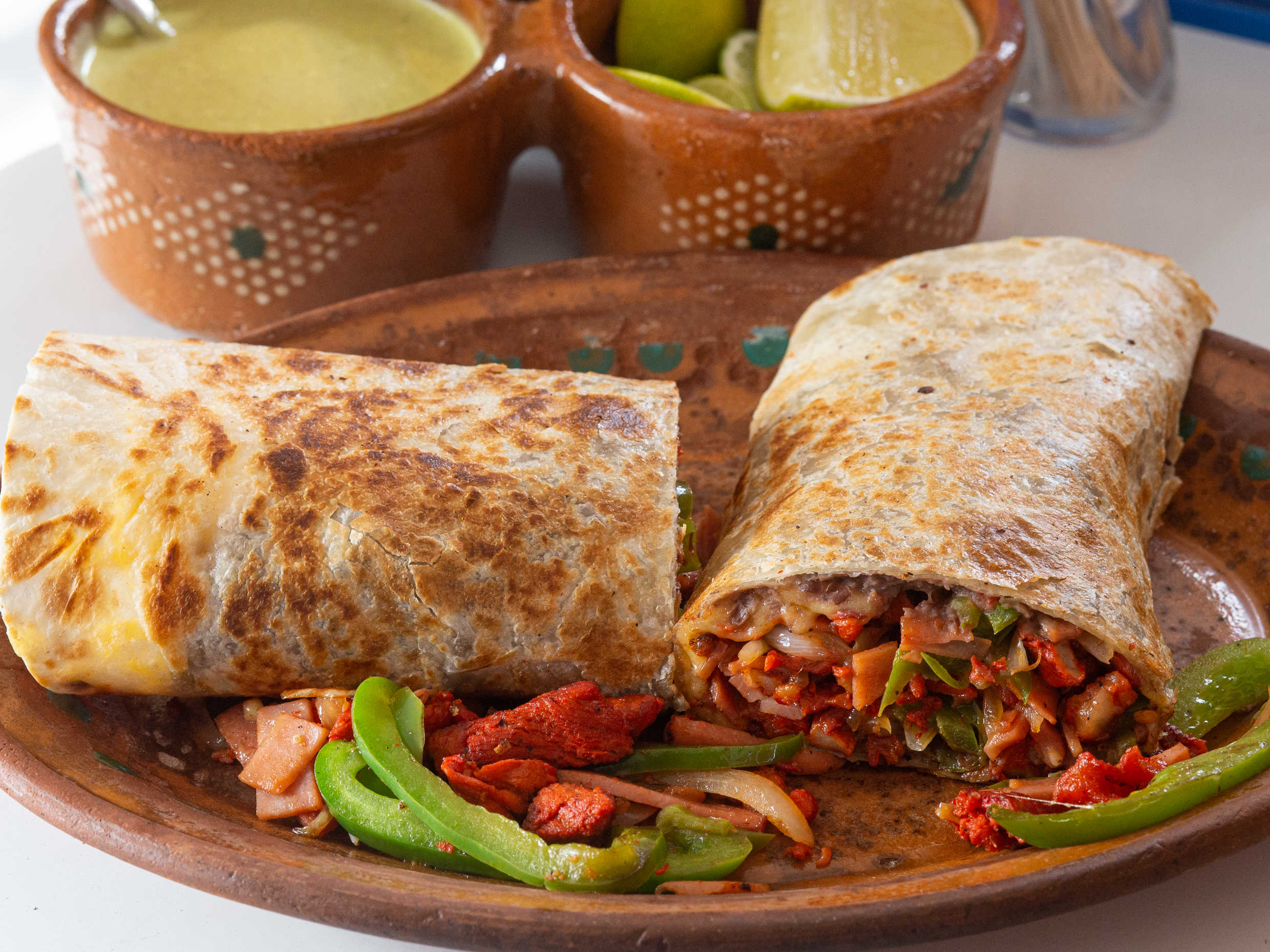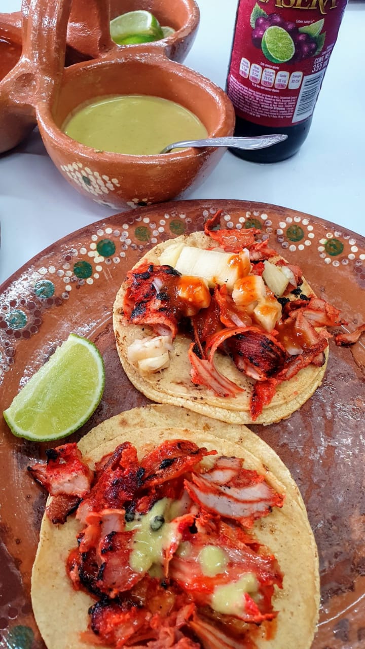 240gr de queso y 100gr de pastor, 3 tortillas de harina, salsa y limón.