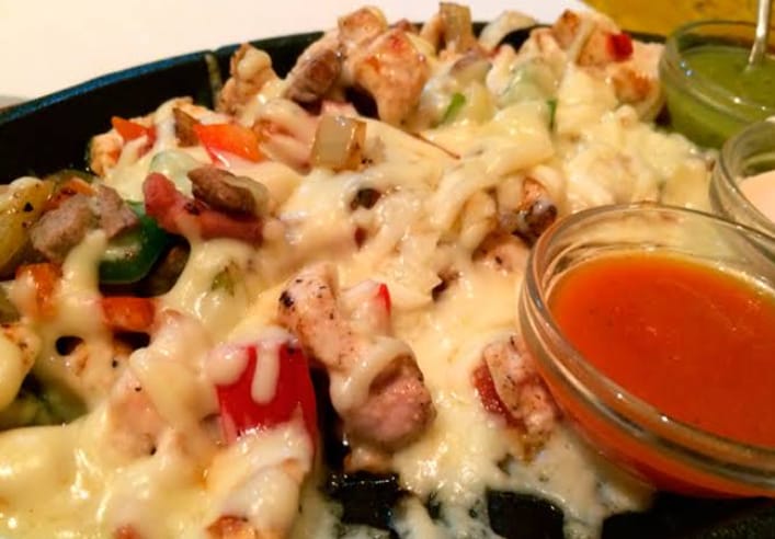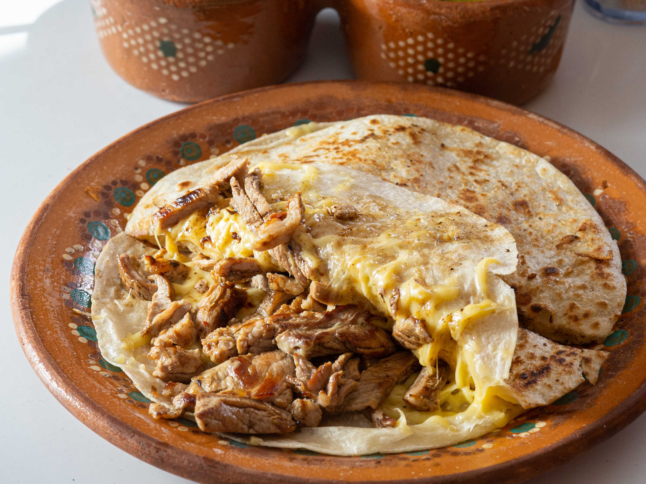 240gr de queso y 100gr de arrachera, 3 tortillas de harina, salsa y limón.