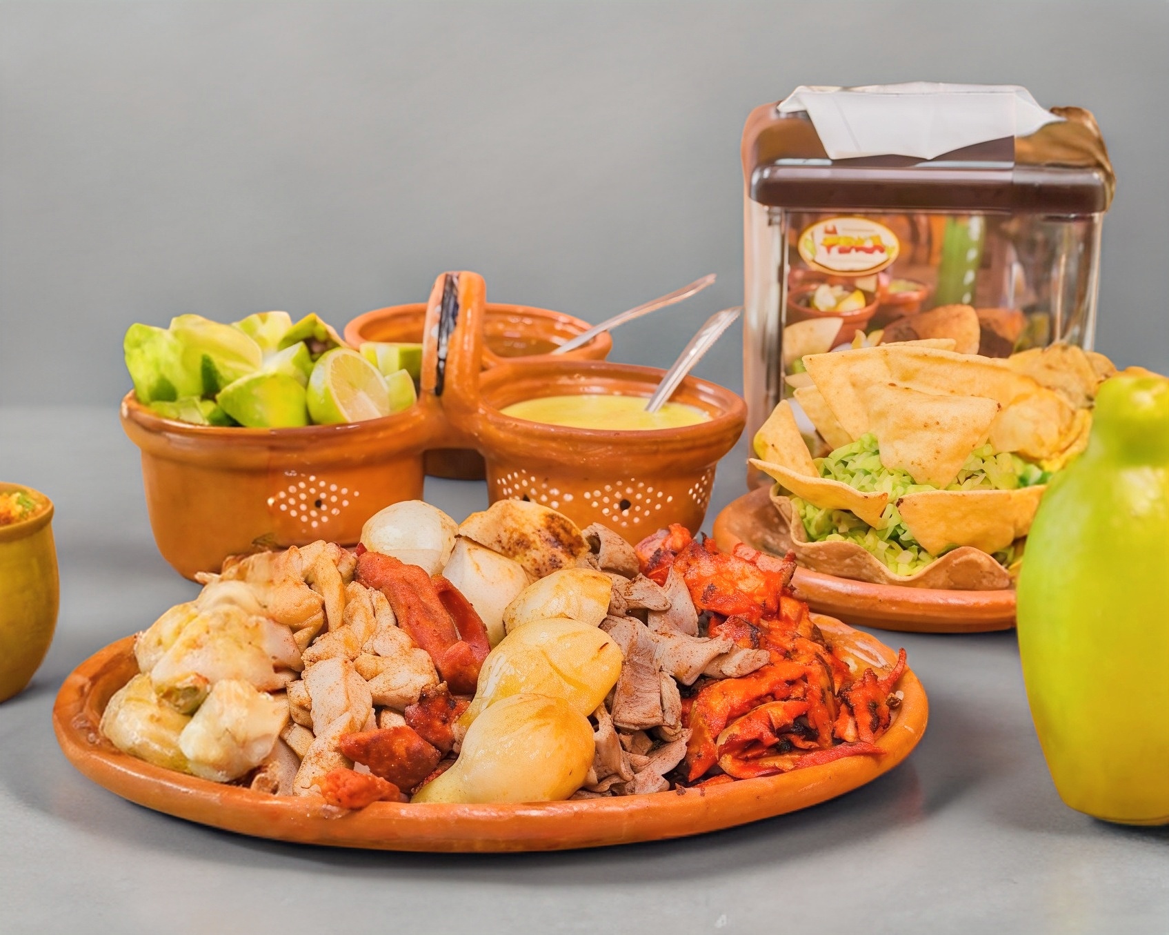 Incluye 4 frijoles charros, cebollines, guacamole (6 tipos de carne a elegir)