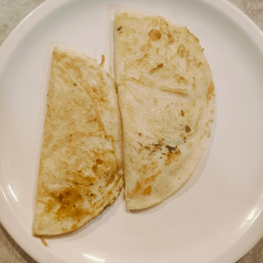 El queso de la casa fundido natural con una costra de queso, acompañado de 5 tortillas de harina