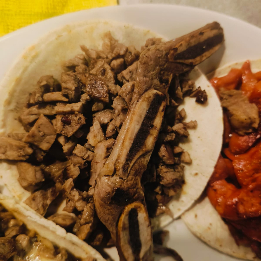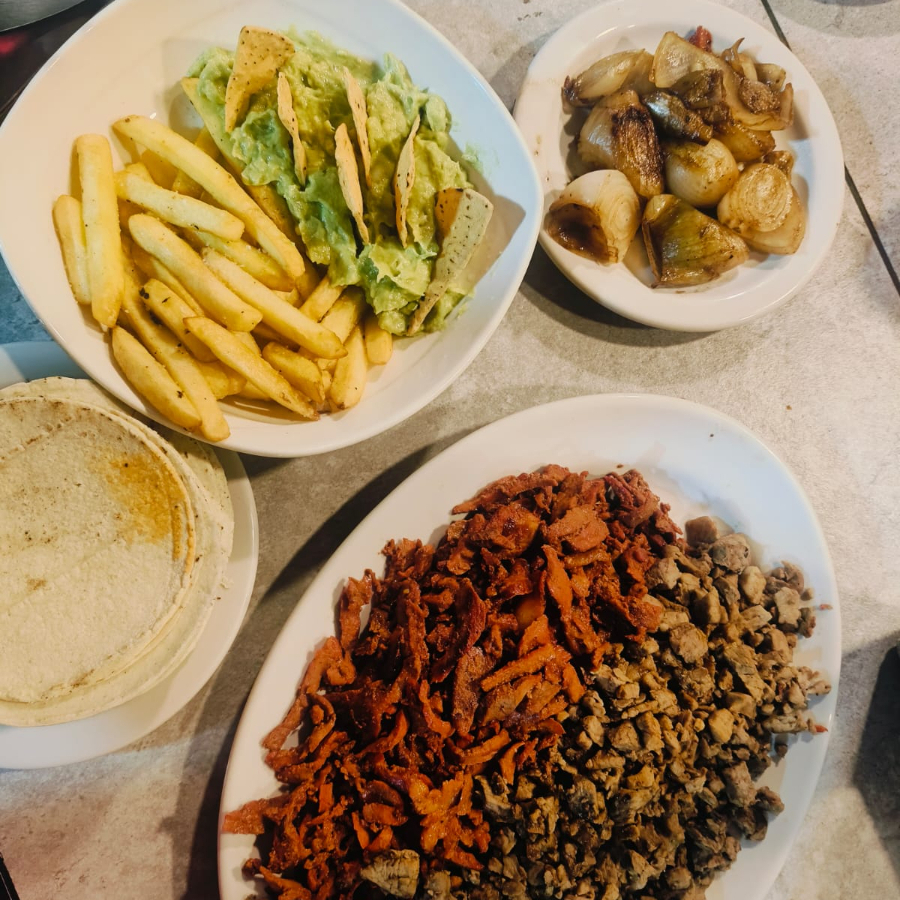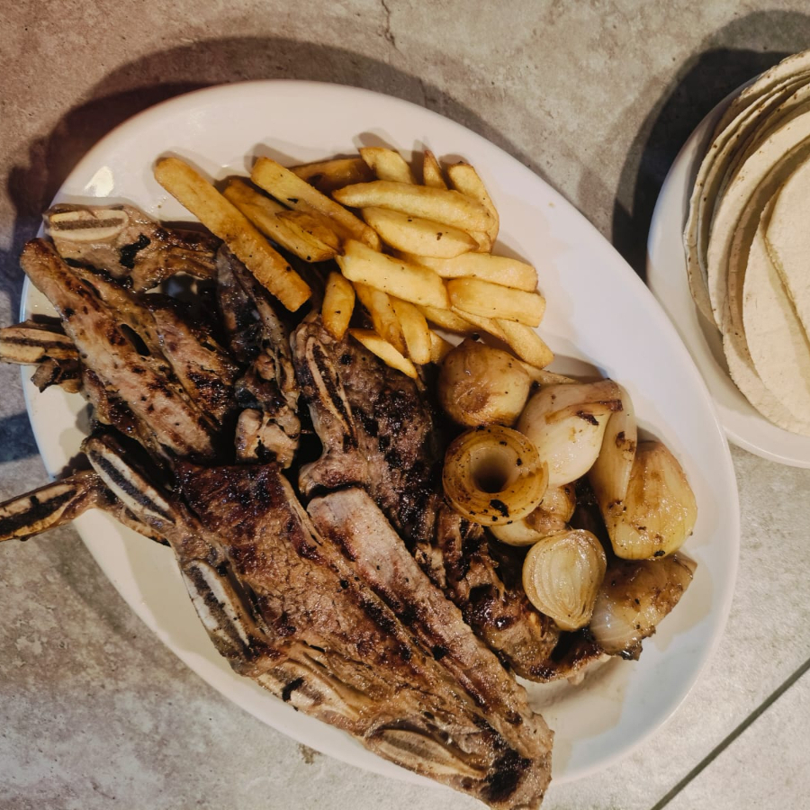 1 kilo de pastor o chuleta con porcion de papas, guacamole y cebollines