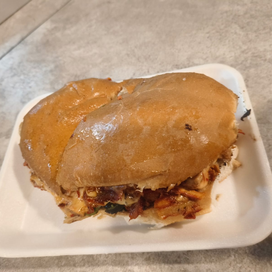2 cortes de bisteck con queso, acompañados porcion de guacamole, papas cebollines