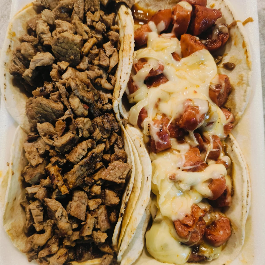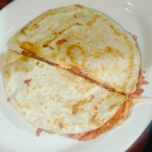 Delicioso taco de la casa con tortilla de harina acompañado de queso y champiñones