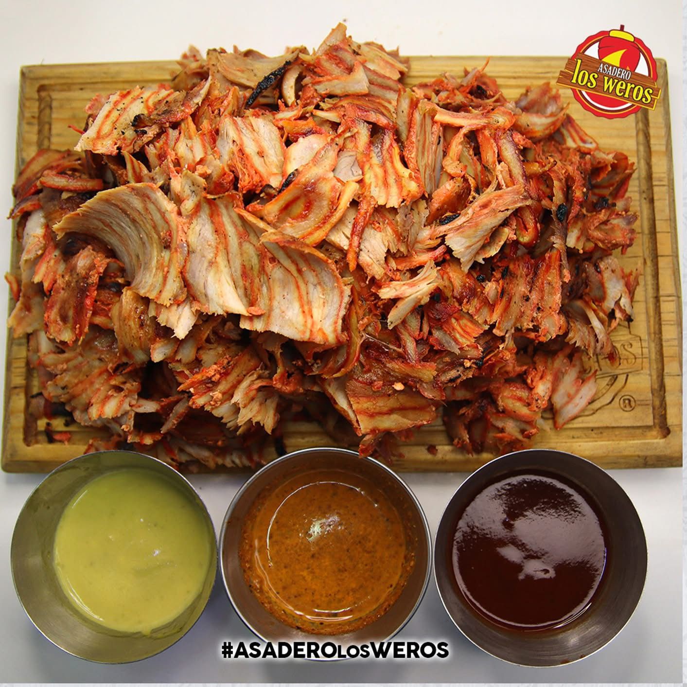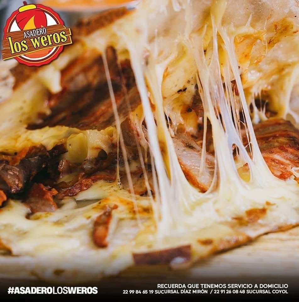 Pan, frijoles, pastor, queso manchego, aguacate y mayonesa.