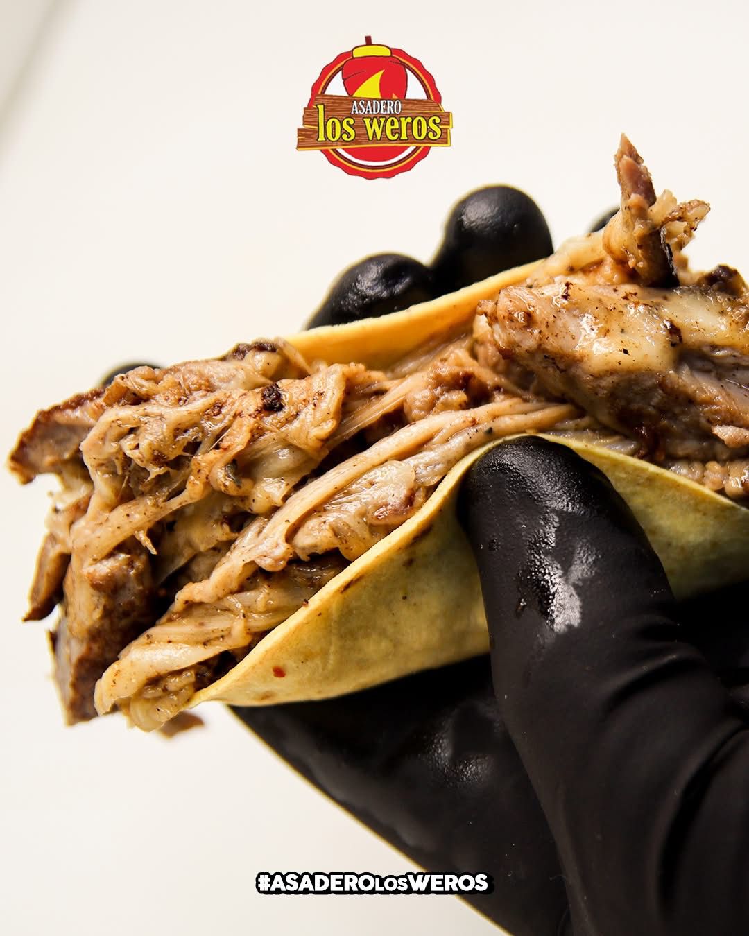Tortilla tradicional de harina, carne al gusto y queso manchego.