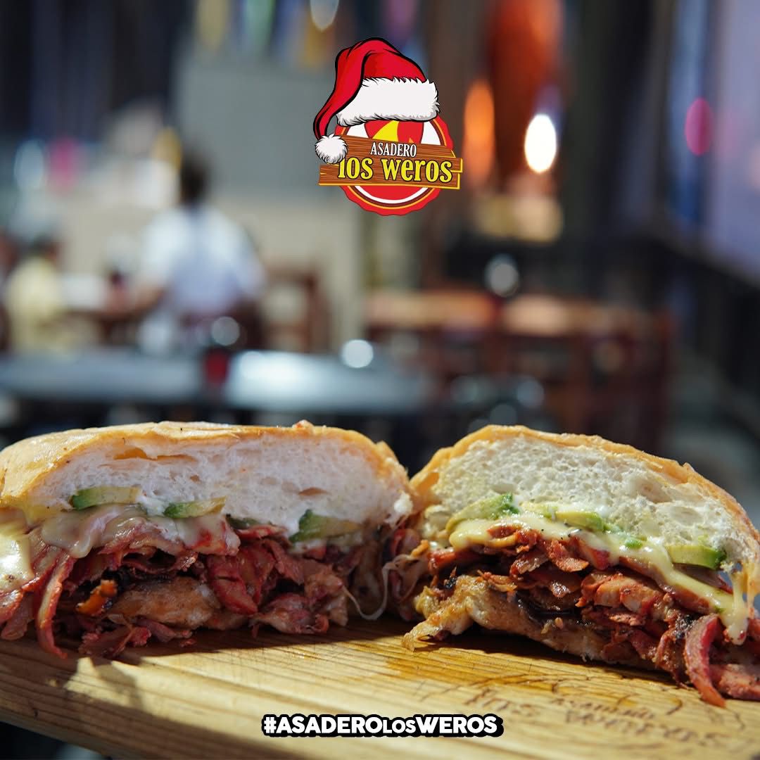 Pan, frijoles, pastor, queso manchego, aguacate y mayonesa.