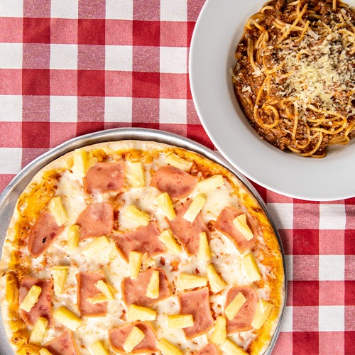 Super combo para comartir con una pizza tradicional grande de 12 rebanadas + 2 pastas y una entrada a elección