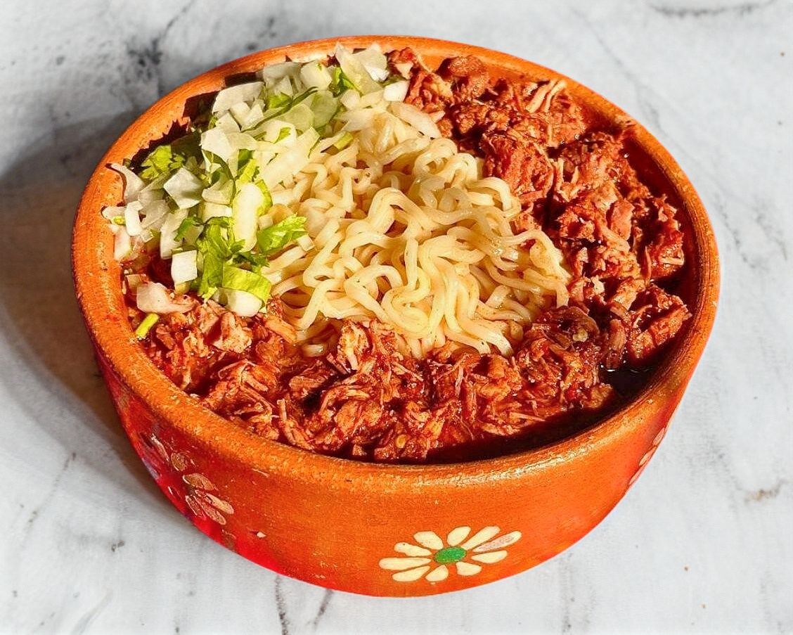 DELICIOSA SOPA RAMEN (MARUCHAN) COCINADA Y ACOMPAÑADA CON NUESTRA BARBACOA DE RES (