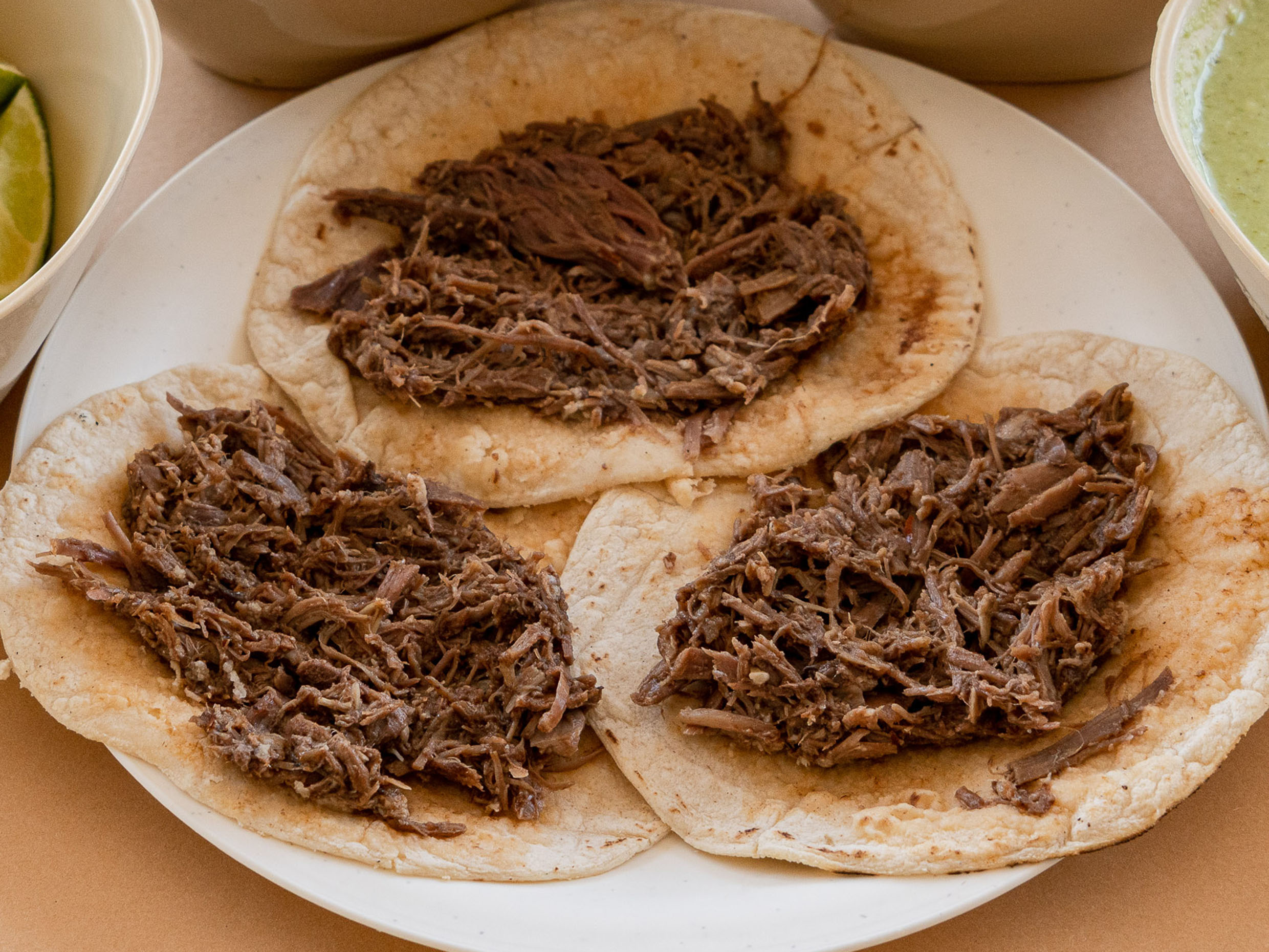 500gr de carne de borrego, incluye 2 consomes, cebolla, cilantro, salsa verde, salsa roja, limón y 1/2kg de tortilla.