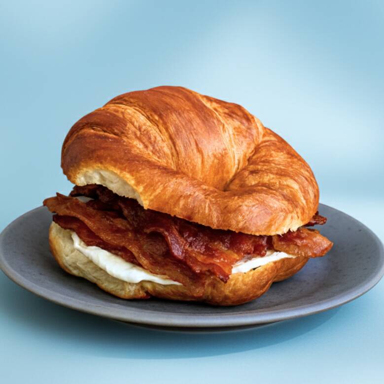 Huevito estilo omelette, jamón de pierna de cerdo y queso americano en pan recién horneado.