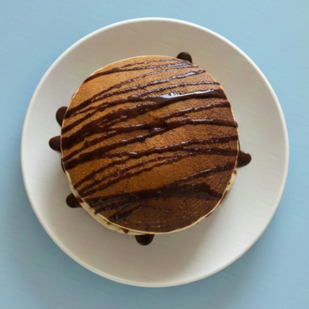 Dos hot cakes rellenos de cremosa Nutella.
