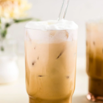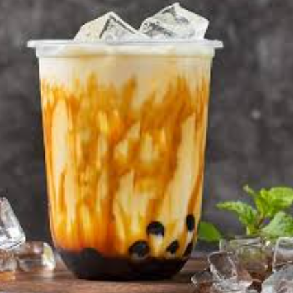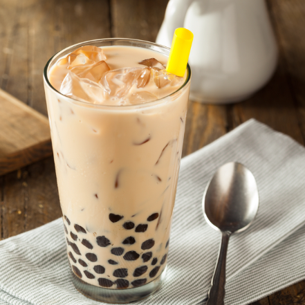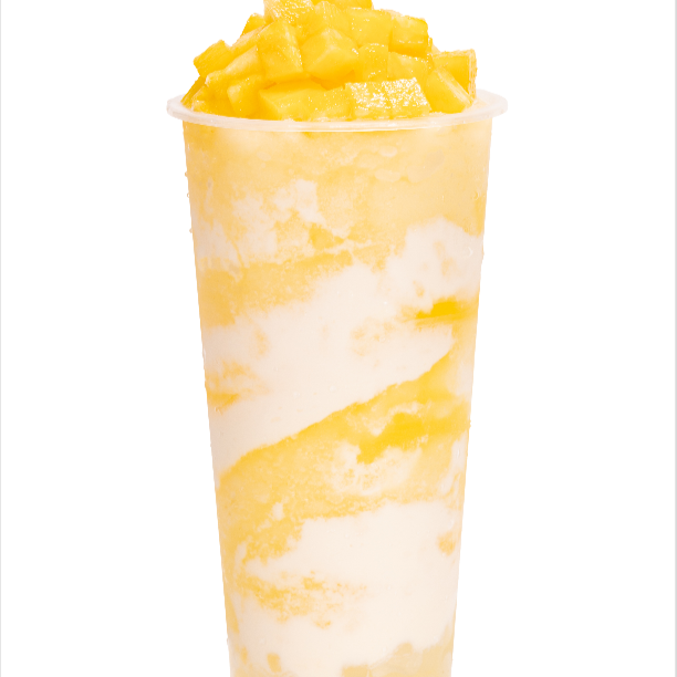 Bebida frappeada con jarabe de mango y leche de Coco con crystal boba