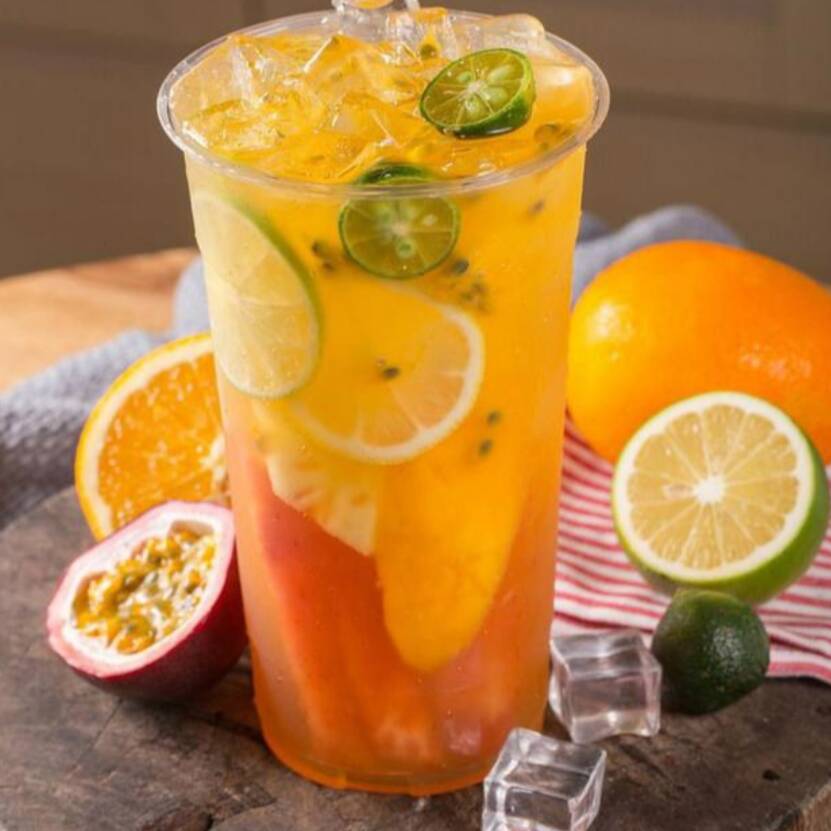 Bebida a base de te de Jazmin, Limon y jarabe de fresa
