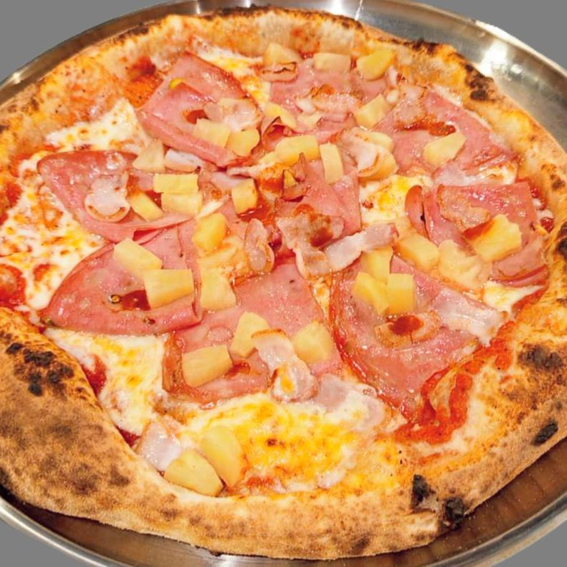 Disfruta de la armonía perfecta entre lo dulce y lo salado con trozos jugosos de piña, mortadella con pistache y tocino ahumado en madera de manzano sobre una capa de salsa de tomate fresco con un toque de sal y pimienta, gratinada con abundante queso monterrey jack. Diámetro 33~35 cm