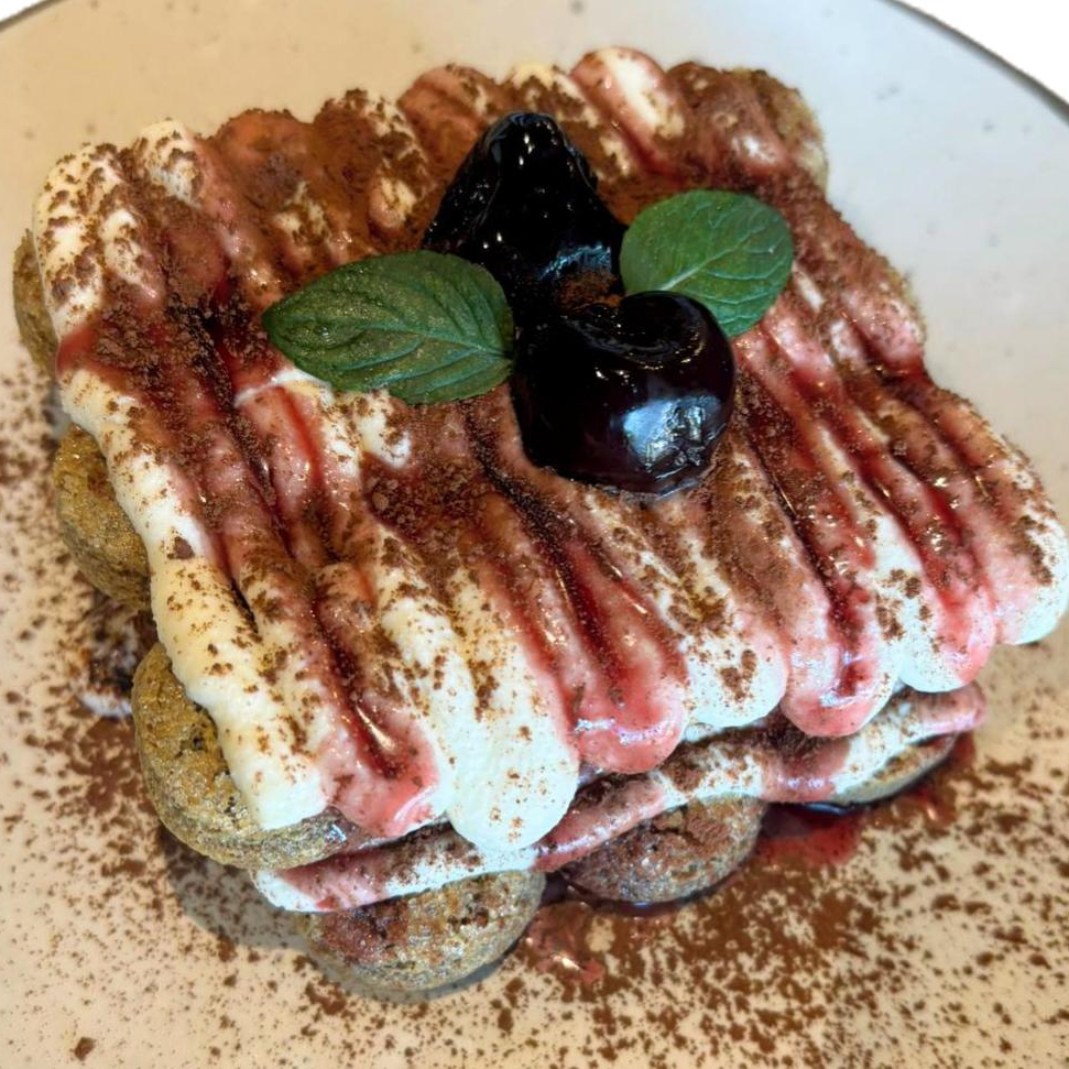 Artesanal y auténtico postre italiano, preparado con soletas italianas, crema a base de Ricotta y Mascarpone con un toque de licor de cerezas negras y café expreso. Porción 363 gr