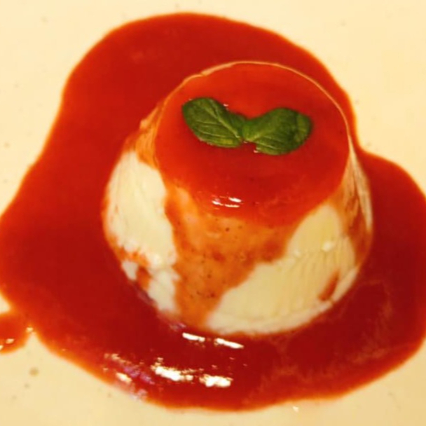 Un suave y terso postre de leche italiano, bañado en nuestro delicioso coulis de fresa. Porción 200 gr