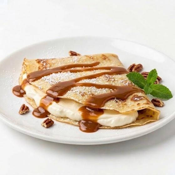 Crema de avellanas de cacao sobre una deliciosa crepa que te endulzará el paladar.