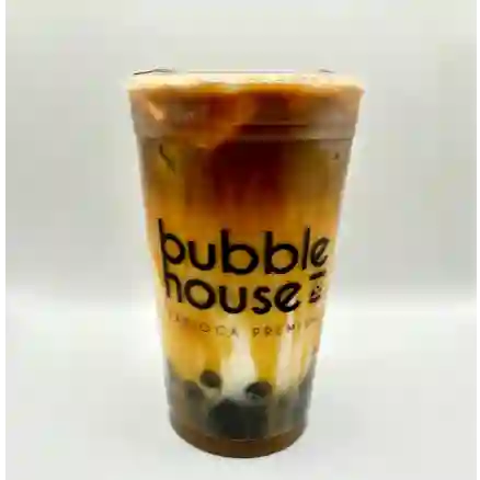 Doble expresso mezclado con la leche de tu preferencia, delicioso sabor caramelo y tapioca negra.