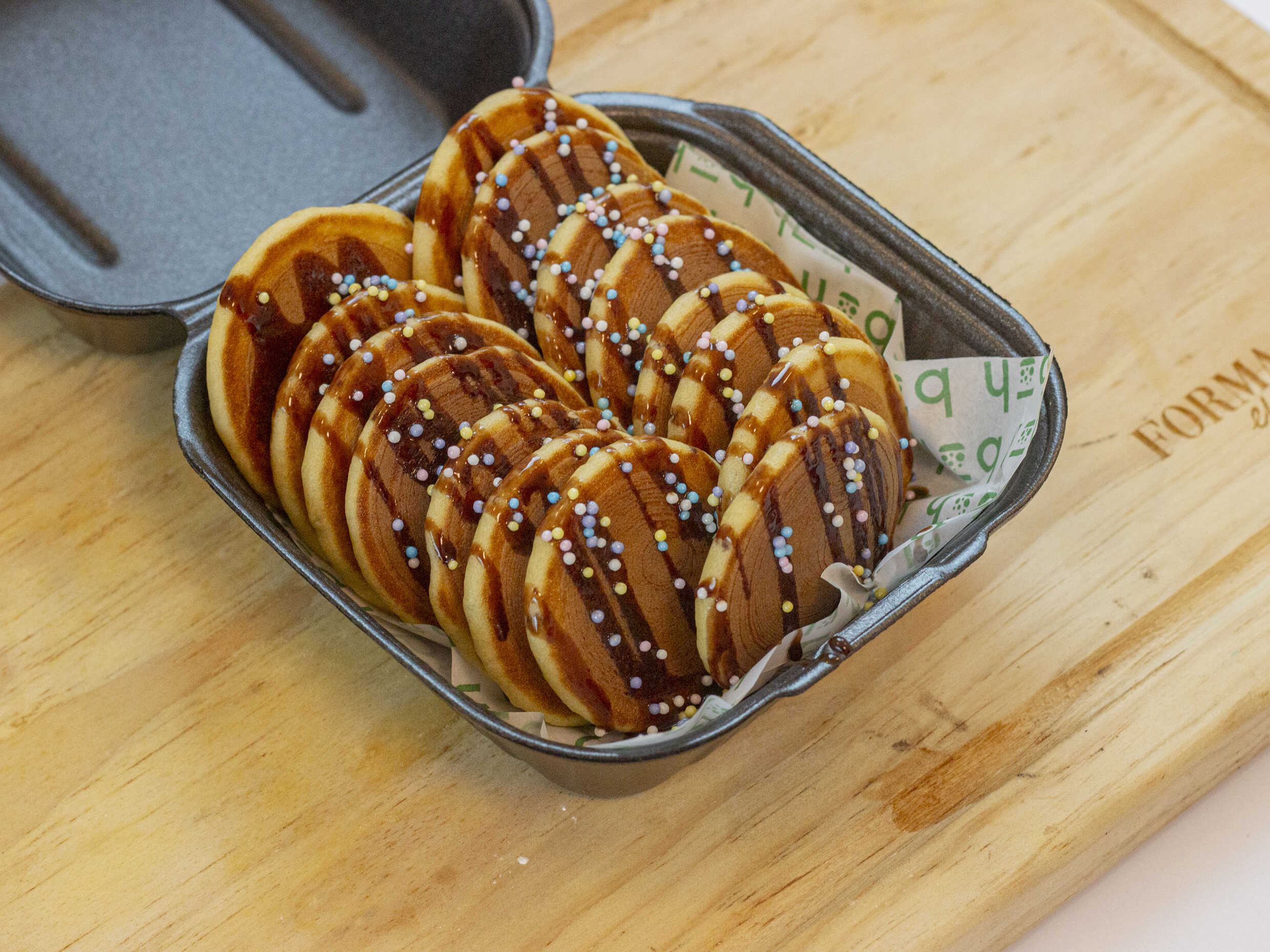 Orden de 15 esponjosos mini pancakes, perfectos para compartir (incluye 2 toppings a elegir).