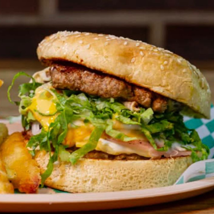 Pan jumbo con 2 porciones de carne de res, jamón, queso manchego, queso de hebra, queso amarillo, preparado con lechuga, jitomate, cebolla, aguacate y todos los aderezos incluye porción de papas a la francesa.