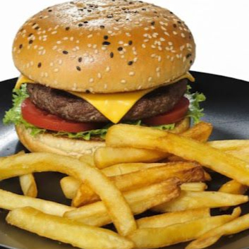 Déjate deleitar por carne de res artesanal 300 gr ,triple queso manchego ,lechuga italiana y tomate , pan de ajonjolí en compañía de 150 gr de papas francesas . Recipientes individuales : capsu, mostaza y chile en vinagre