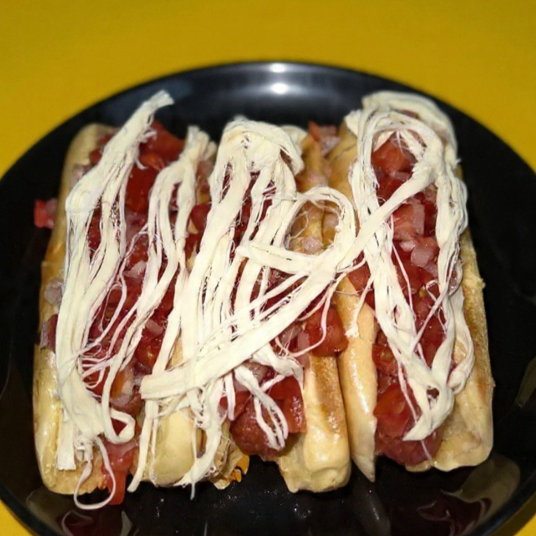 ¡Triple sabor, triple antojo! 🌭🔥 Disfruta 3 Hot Dogs irresistibles con pan suave, salchicha de pavo jumbo, tomate fresco, cebolla picadita, queso de hebra y un toque de mayonesa . Además, vienen acompañados de catsup, mostaza y chiles en vinagre en recipientes individuales.