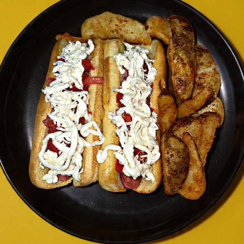 Déjate tentar por 2 Hot Dogs de salchicha de pavo, con pan suave, tomate fresco, cebolla picada y queso de hebra . Acompañados de 150 g de papas gajp doradas y crujientes. Incluye catsup, mostaza y chile en vinagre servidos por separado para disfrutar a tu gusto.
