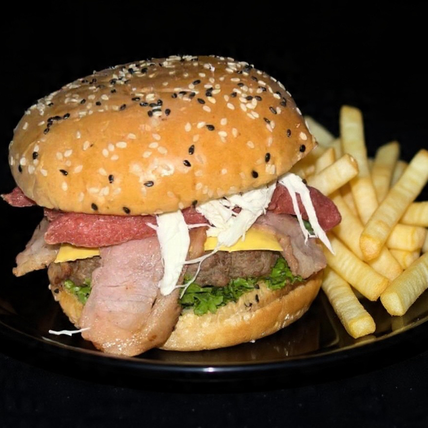 BURGER DE TOCINO CON PAPAS FRANCESAS