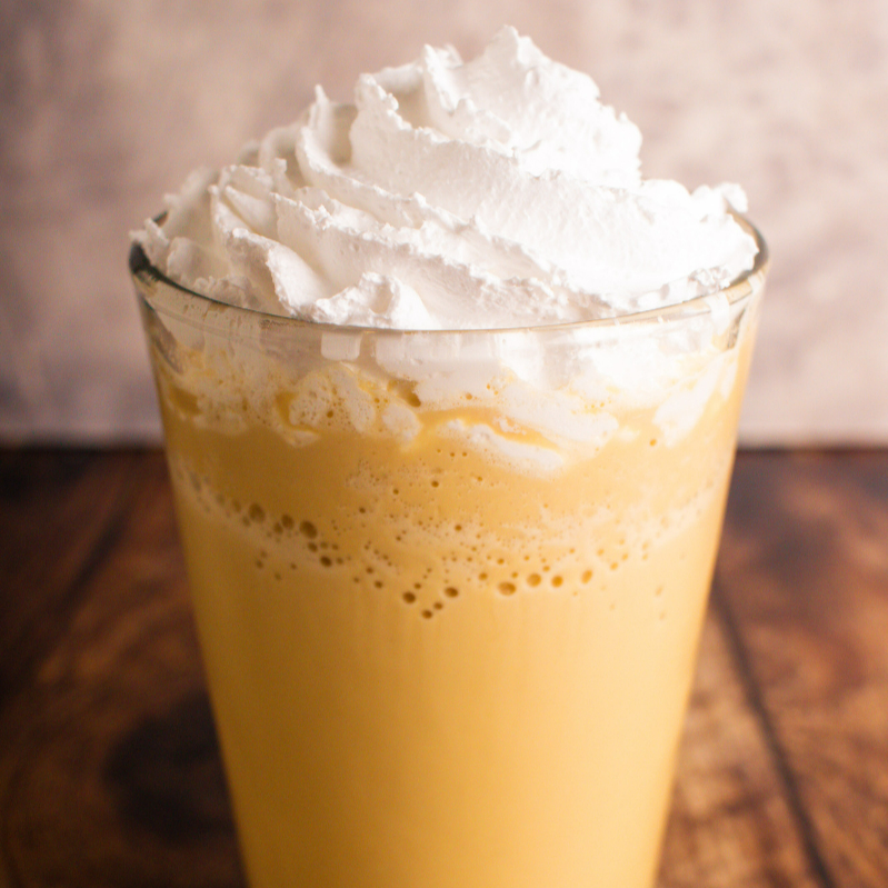 Té chai (bebida de la India a base de especias) con base de leche, rico sabor a manzana y un toque de canela.