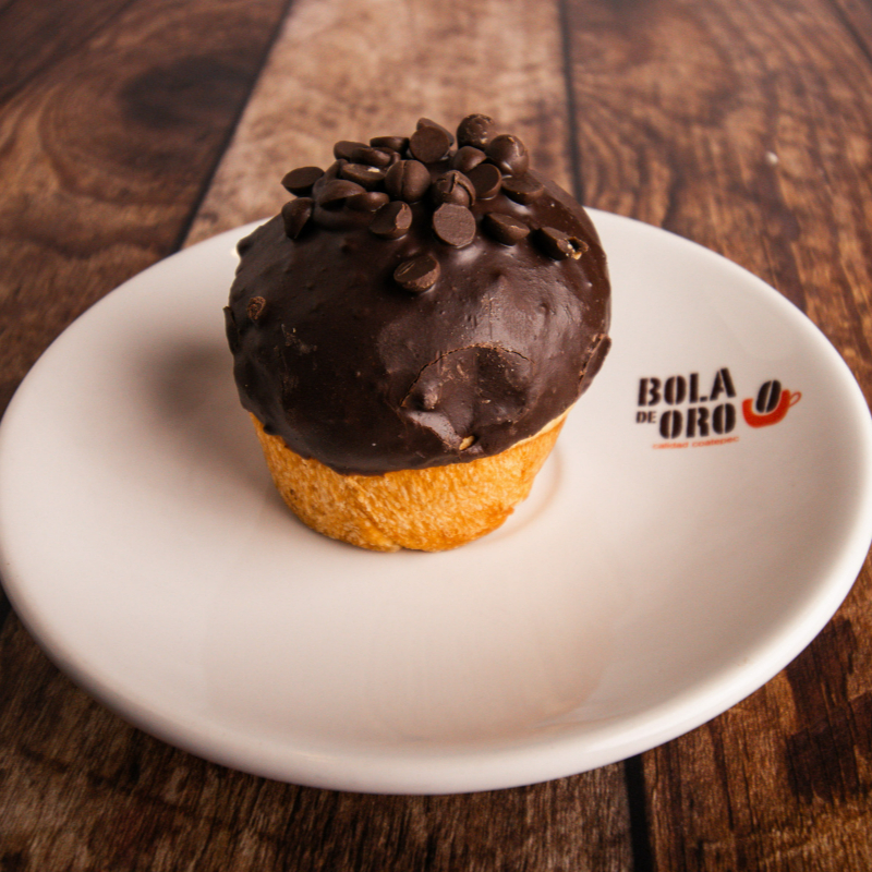 Suave pan con relleno de chocolate y cobertura de chocolate.