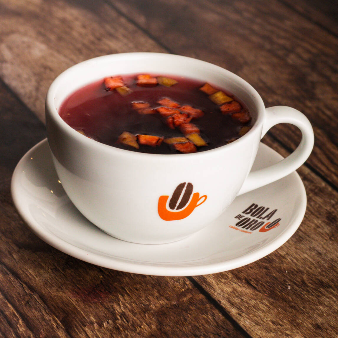 Té chai (bebida de la India a base de especias) con base de leche, rico sabor a manzana y un toque de canela.