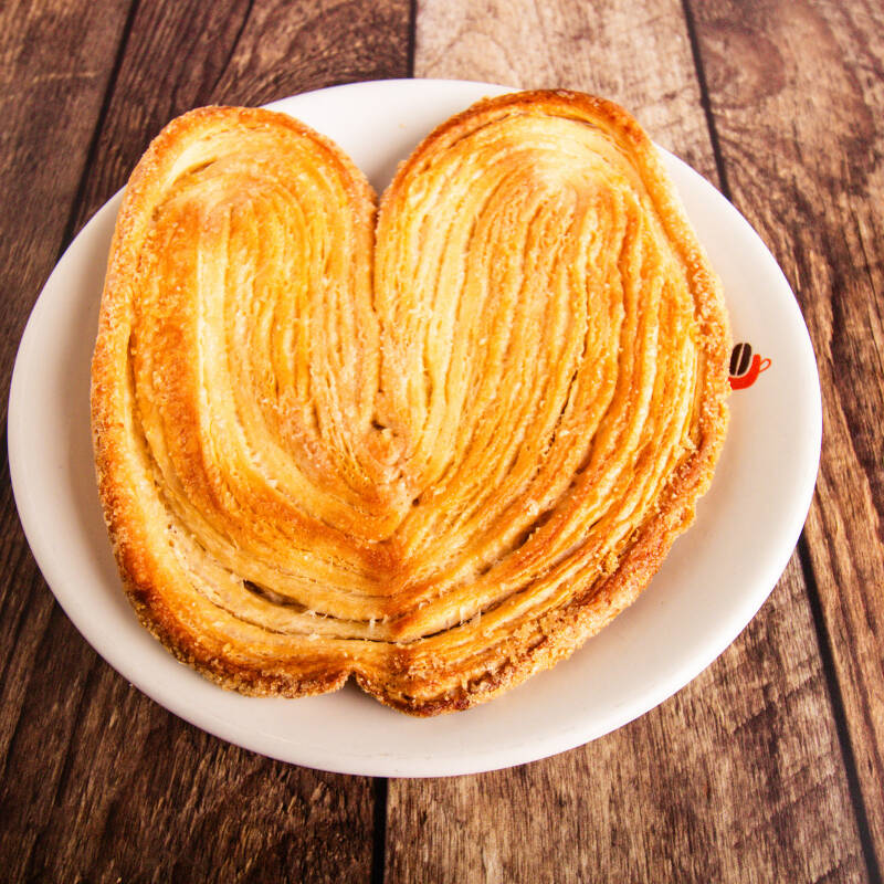 Elaborado de masa hojaldre y mantequilla.