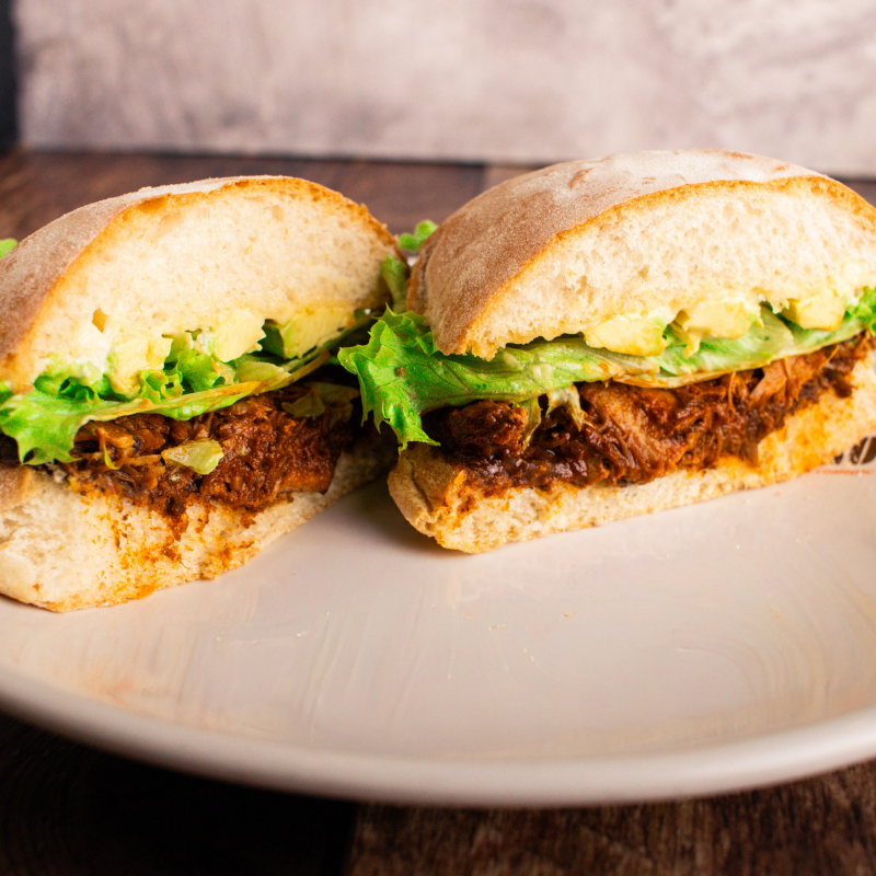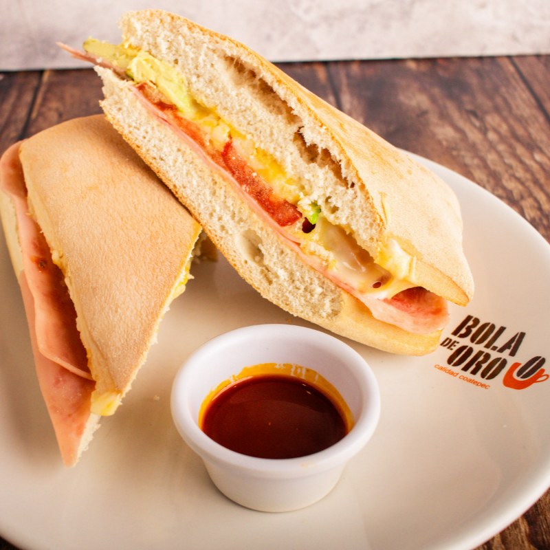 Pambazo con frijoles, pierna adobada, aguacate y lechuga. 340 gr.