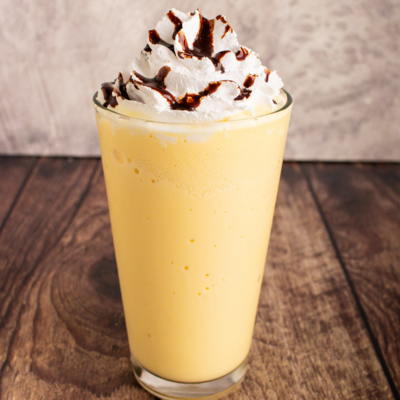 Bebida cremosa a base de rompope, decorada con crema batida y un toque de chocolate. 360 ml.