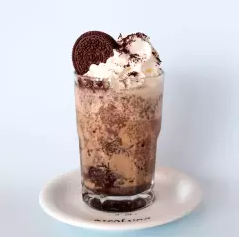 Bebida 355 ml: Frappé de café elaborado a base de extracto de café espolvoreado con galleta oreo acompañado de crema batida con una galleta Oreo.