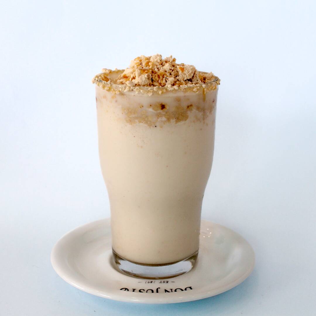 Bebida 473 ml: Frappé base de leche con mazapán con un toque de lechera espolvoreado con mazapán.