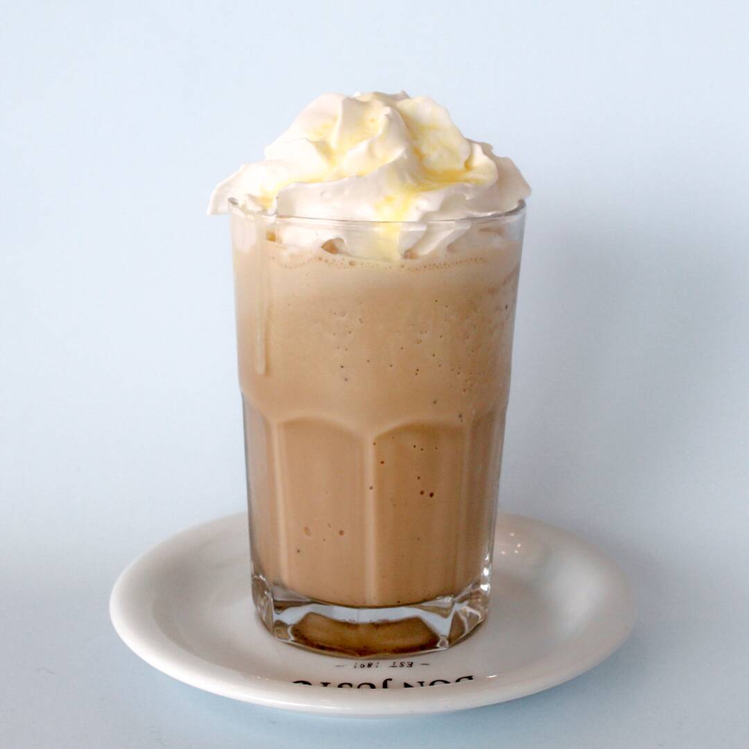 Café de 360 ml: espresso doble con base frappé con helado de vainilla.