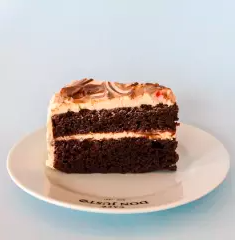 Rebanada de pastel de chocolate.