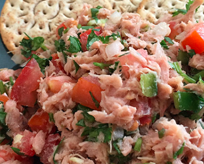 Preparada con lechuga, tornillos (pasta), tomate, zanahoria, atún con verduras y mayonesa.