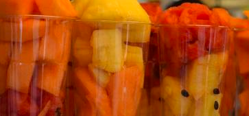 3 piezas. Waffles con fruta a elegir, bañados en lechera y chocolate Hershey´s.
