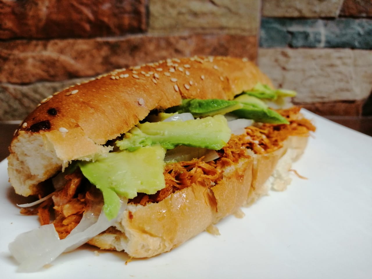 Delicioso baguette de 25 cm con frijoles, queso gouda y su ingrediente favorito: chorizo, tocino y jamón.