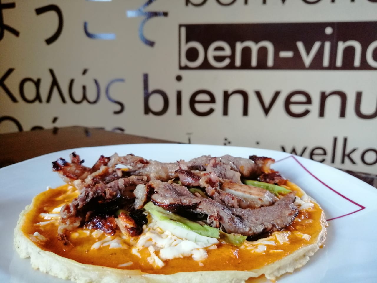 Picada grande preparada (bistec, huevo, champiñón, picadillo, pollo y cochinita pibil).