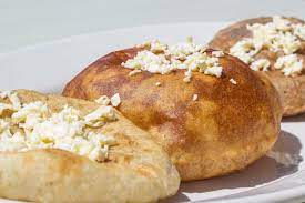 Exquisita bomba con mantequilla, frijol y queso gouda