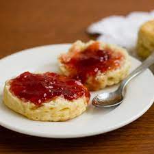 Delicioso bísquet caliente con mantequilla y mermelada.